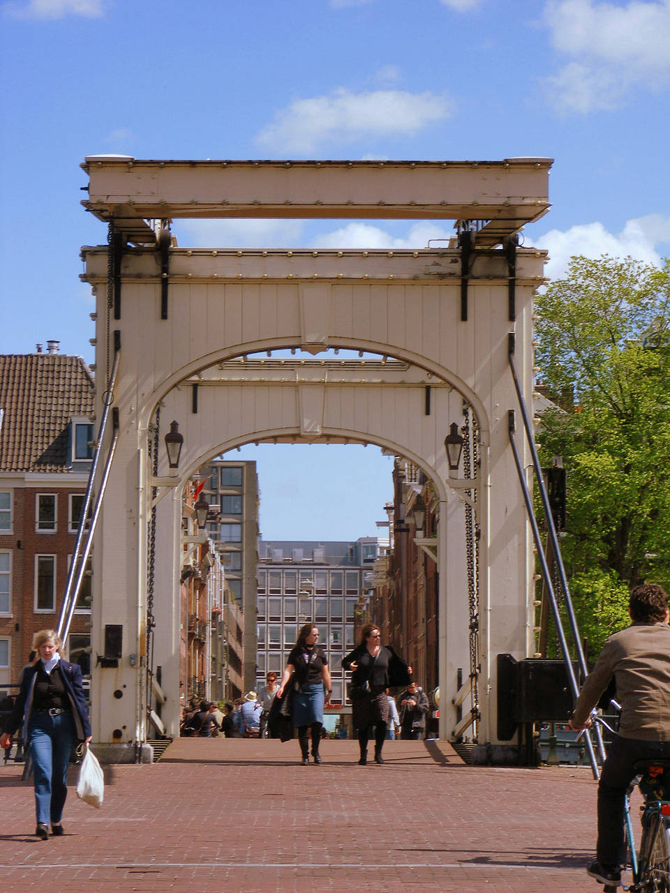 Die Magere Brug, die über die Amstel hinweg die Kerkstraat mit der Nieuwe Kerkstraat verbindet, ist die wohl prominenteste Brücke Amsterdams. Die Originalbrücke, die leider abgerissen wurde, geht ursprünglich auf das Jahr 1672 zurück. Im Jahr 1929 rekonstruierte man die strahlend weiße Holzbrücke Magere Brug und bis heute wird die Fußgängerbrücke noch ganz traditionell per Hand bedient, wenn größere Schiffe die Amstel entlang schippern und passieren müssen.